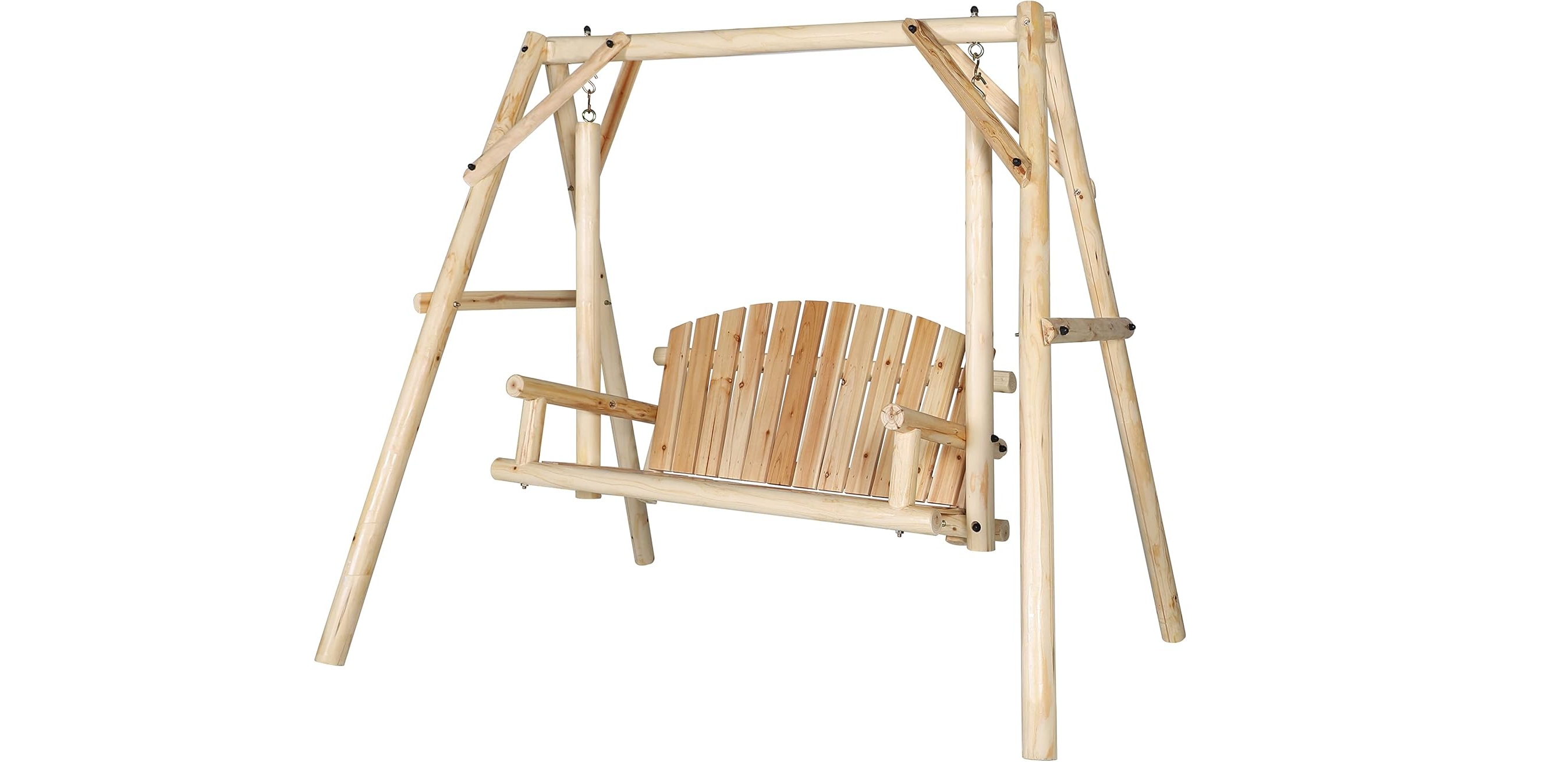 Outdoor Patio Hanging Wooden Porch Swing 4FT with Chains, 2-Person Heavy Duty Swing Bench for Garden and Backyard, Wood Brown